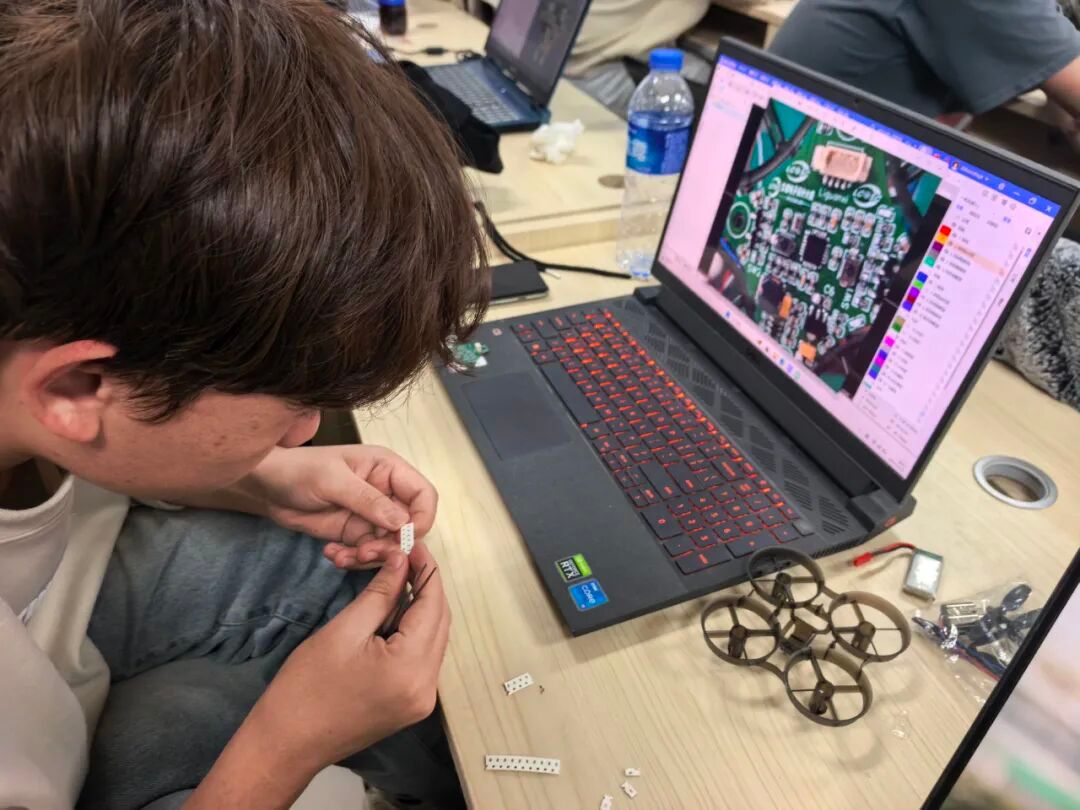 大三学年聚焦高阶系统研发,围绕无人机系统开发全流程构建模块化培养体系。学生将通过无人机总体设计的系统学习,掌握电路原理图设计、PCB制板焊接、无人机结构设计及软件系统设计等核心技能,完成无人机软硬件的总体调试。