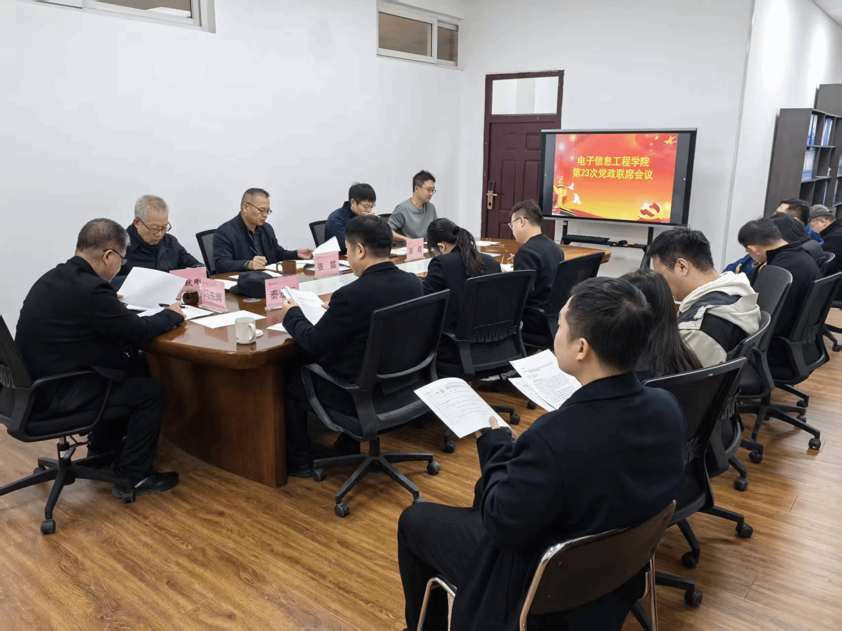 2025年10月29日我院在知行楼D303会议室召开党政联席会,会议由学院党委书记马东辉主持,院长秦宏伍、副院长张猛、李明晶、邹稷、党委副书记张立峰参加了会议。学校第二巡察组组长周默刚,落实相关议题的系室主任及教师列席了本次会议。