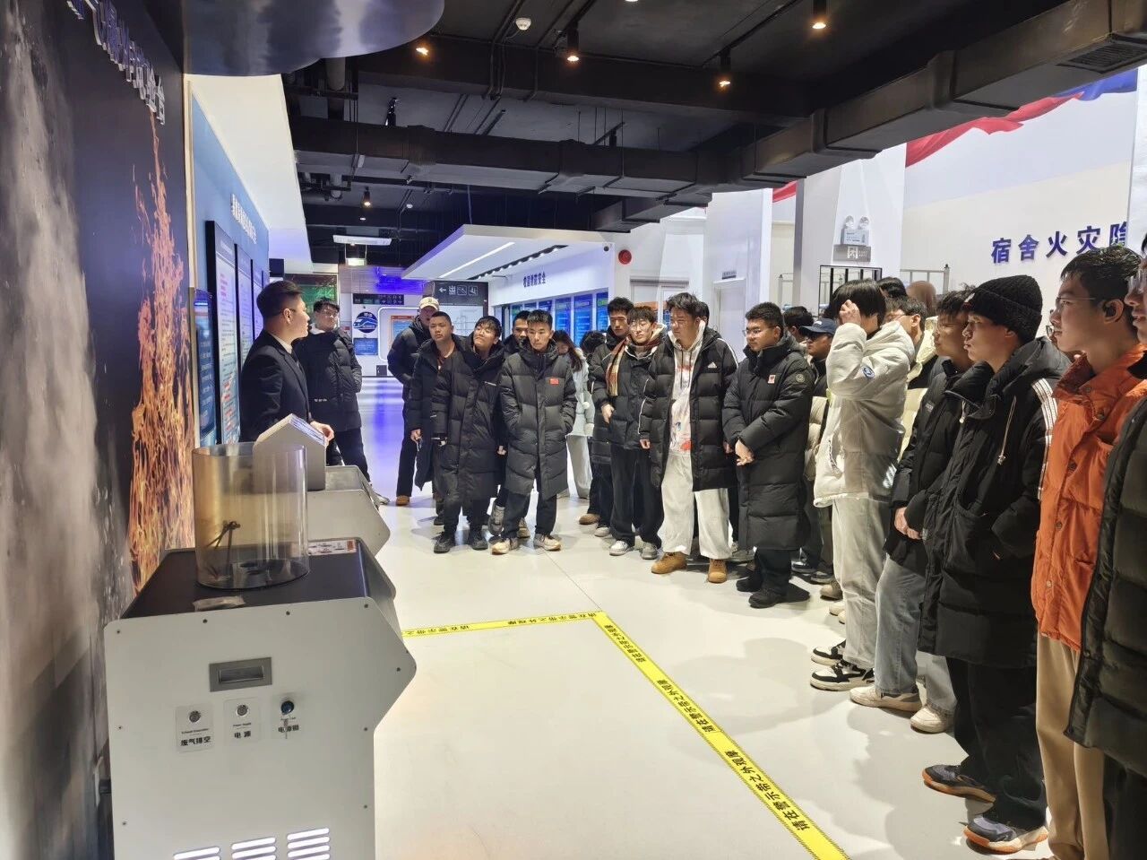 我院师生抵达实践基地后,在工作人员的带领下,同学们沉浸式体验消防实践项目,通过电气短路起火演示、油锅起火扑救实操,掌握火灾成因及初期处置原理;在地震模拟屋、废墟坍塌模拟区、浓烟逃生通道等场景中,学习避险、生存及逃生技能。讲解员同步普及自救互救知识,我院师生在理论与实践的深度融合中,切实增强安全意识,提升应急处置能力。