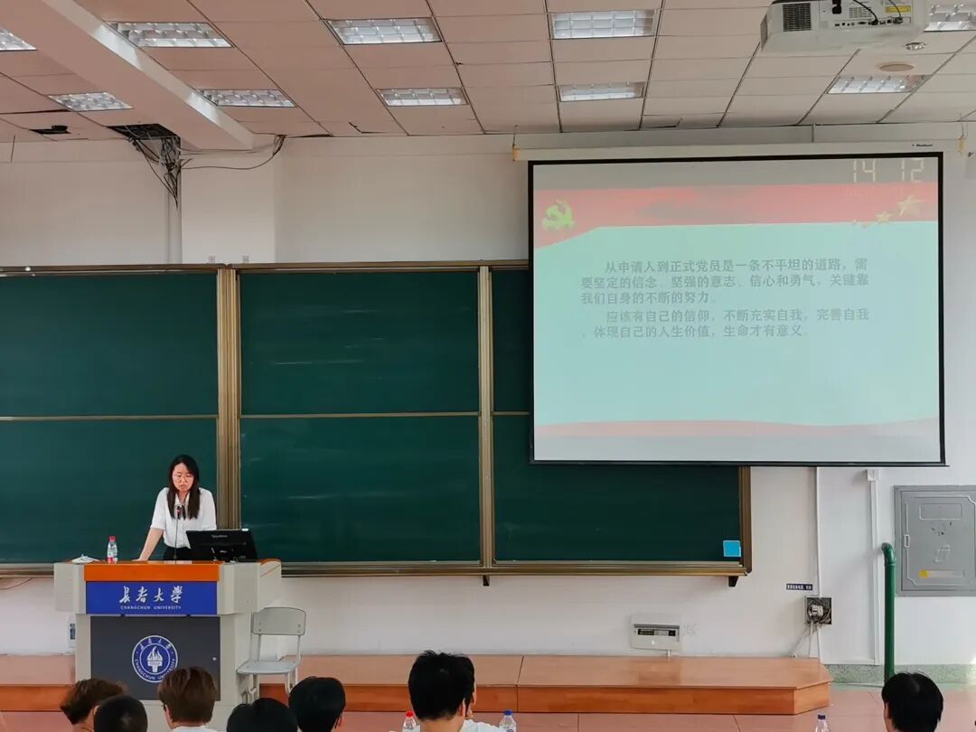 最后,孙老师清晰地讲解了入党资格、发展党员全流程及入党申请书、思想汇报撰写规范等详细要求。呼吁全体2025级新生接续奋斗、勤奋学习、筑梦未来,把个人的理想和追求融入国家和民族伟大复兴的新时代进程中,积极主动地接受党组织的培养和考验,力争早日加入伟大、光荣、正确的中国共产党。