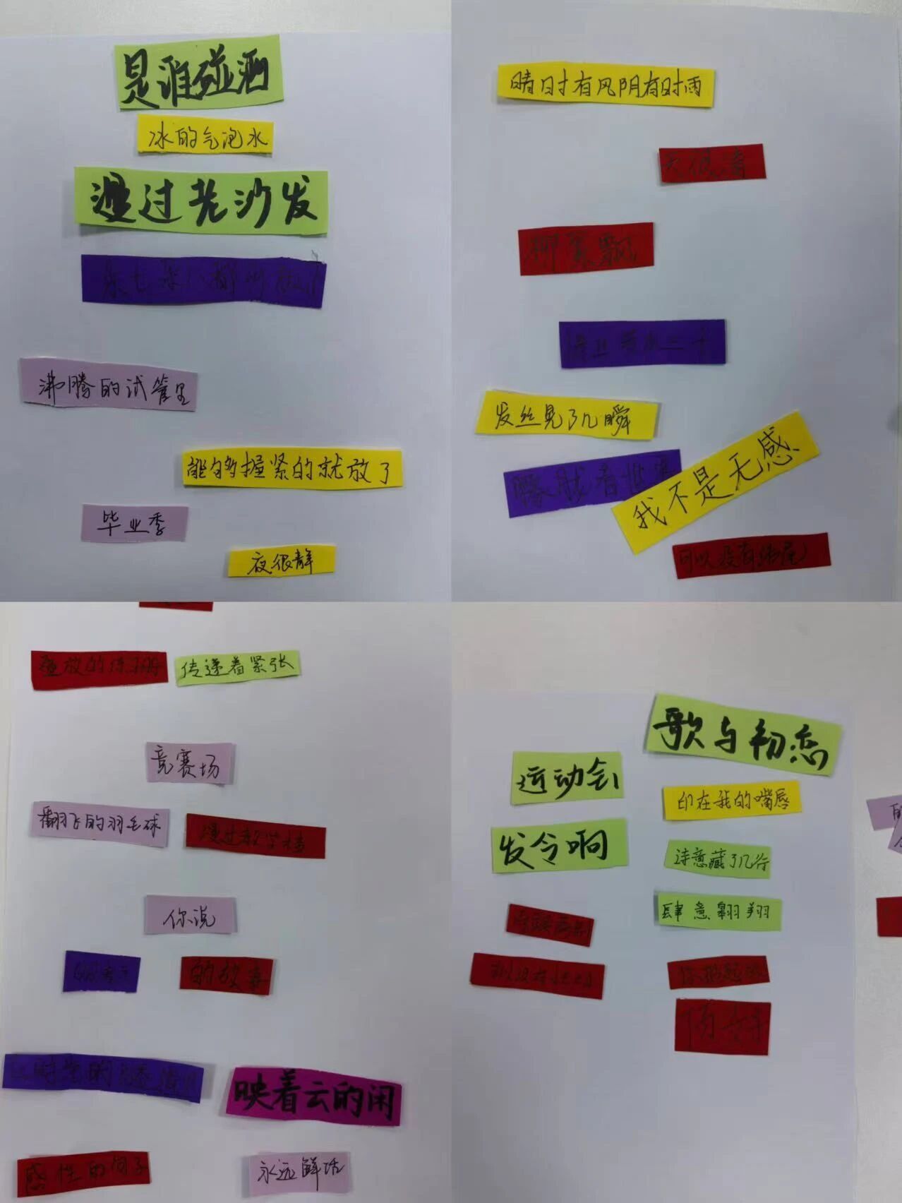 通过本次活动,同学们掌握一些心理调适与缓解焦虑的方法,进一步提升自我心理调适能力,愿同学们通过拼贴诗游戏感受文字的魅力与心灵的疗愈,积极向上面对未来的一切挑战。