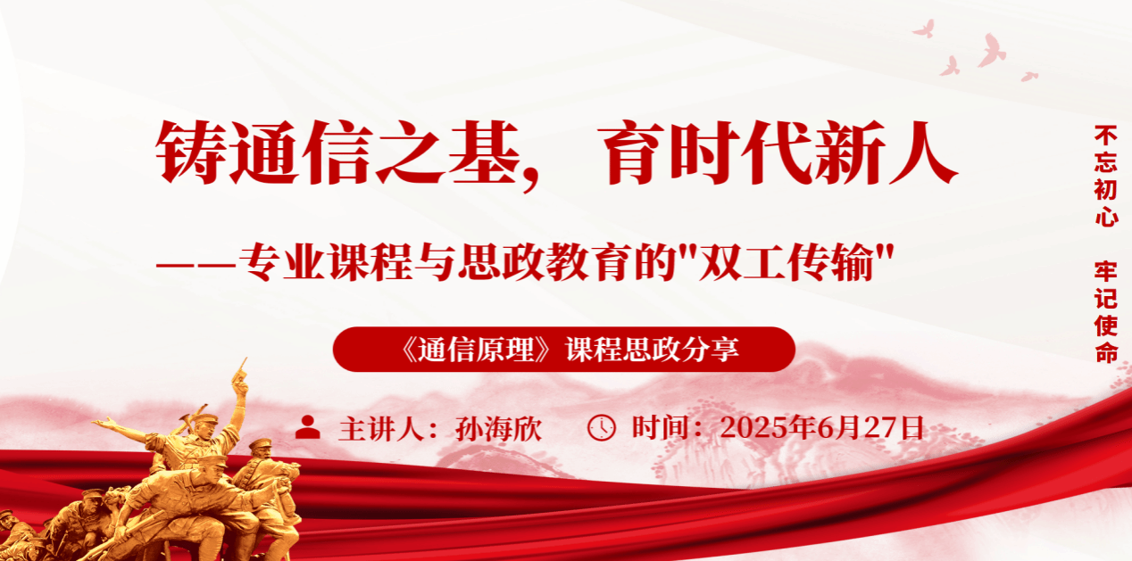为深入贯彻落实党的二十大精神,扎实推进立德树人根本任务,创新推动新工科建设与课程思政同向同行,6月27日,电子信息工程学院成功举办“铸通信之基,育时代新人”——专业课程与思政教育的“双工传输”专题研讨活动。本次活动深入探索新工科背景下课程思政的创新路径,着力构建“知识传授、能力培养、价值塑造”三位一体的育人新格局。