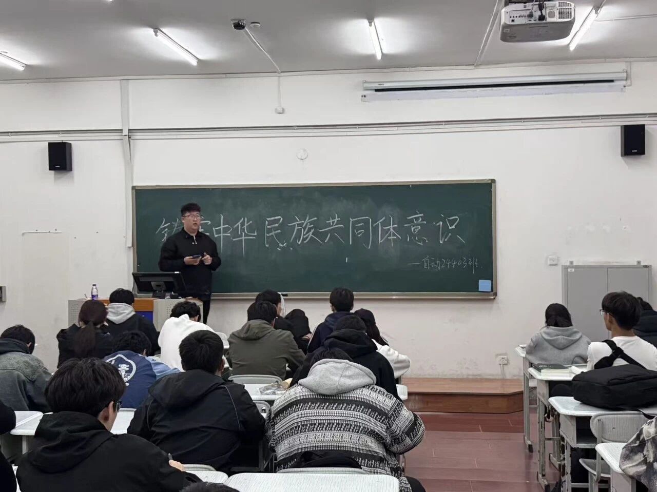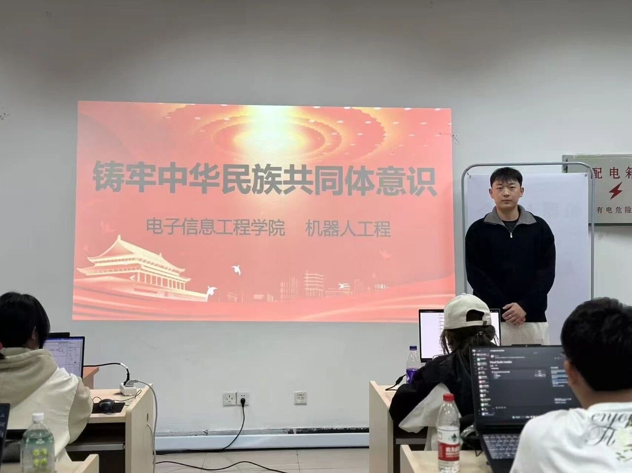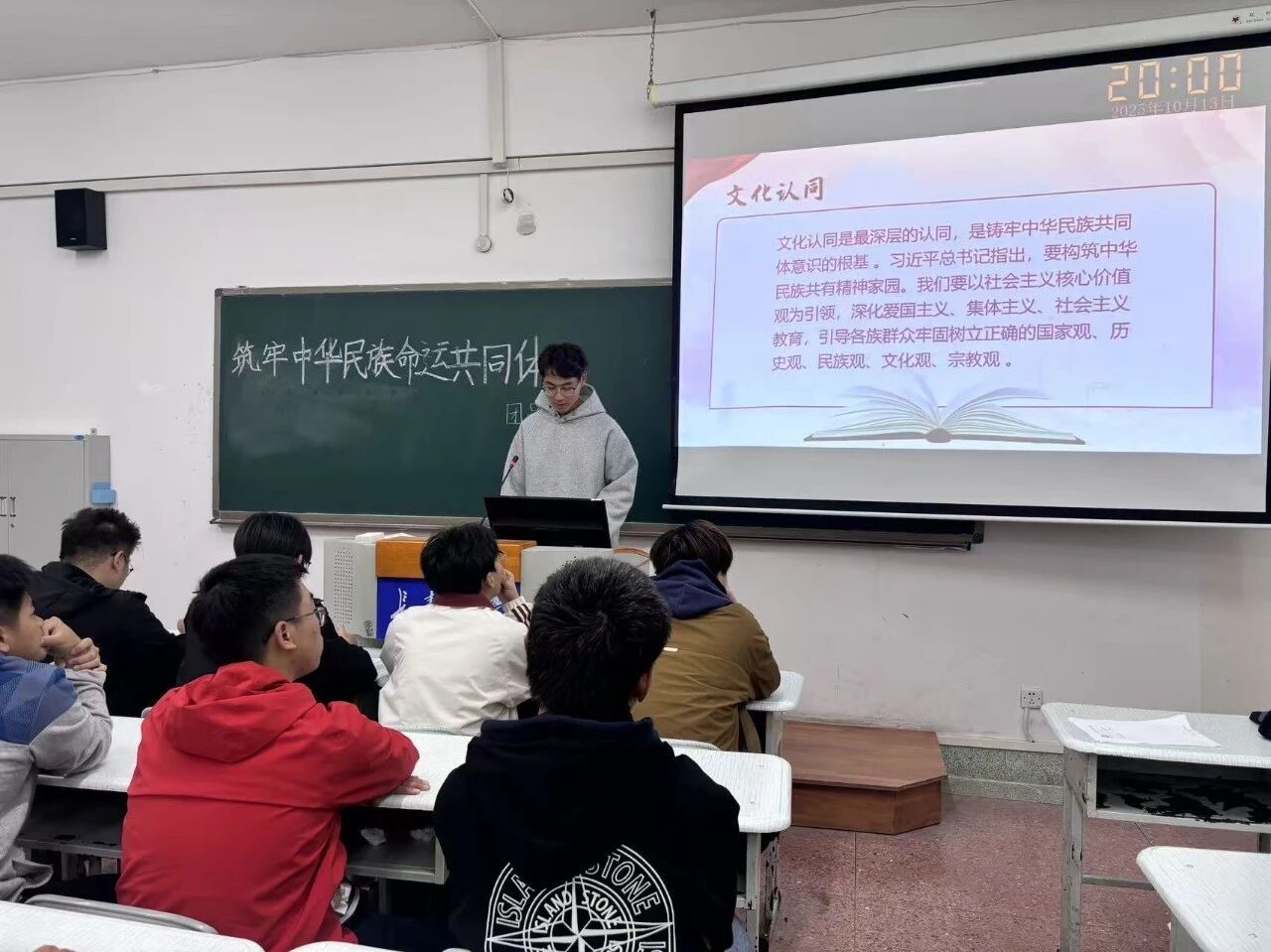 学院党委聚焦新生思想,以“筑牢思想根基,凝聚民族共识”为核心,组织全体新生开展主题班会。各班通过结合电子信息领域的各民族人才协作创新案例,从历史维度、现实意义与青年责任三个层面,系统讲解中华民族多元一体格局的形成与发展,同时设置交流环节,让新生在互动中快速理解共同体理念,为融入校园、践行民族团结奠定思想基础。引导新生将民族团结理念融入到入学教育课堂中。
