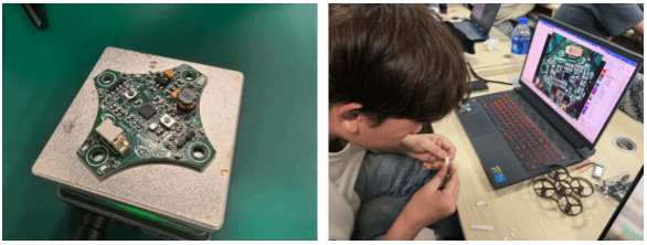 大三学年聚焦高阶系统研发,围绕无人机系统开发全流程构建模块化培养体系。学生将通过无人机总体设计的系统学习,掌握电路原理图设计、PCB制板焊接、无人机结构设计及软件系统设计等核心技能,完成无人机软硬件的总体调试。