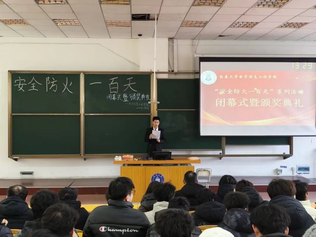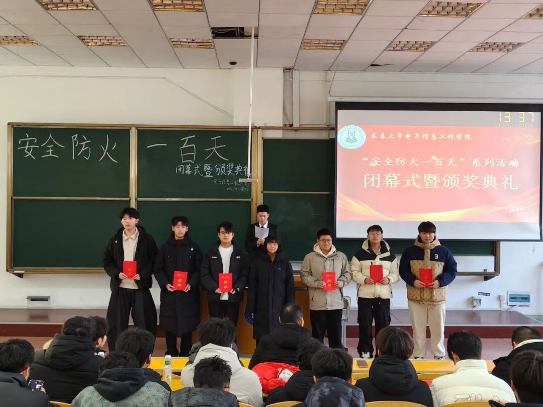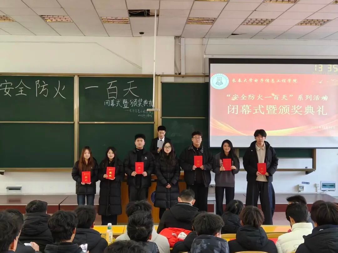 为筑牢校园安全防线,切实加强校园消防安全管理、提升师生消防安全意识与应急处置能力,2025年12月15日,长春大学电子信息工程学院在正心楼一楼东阶梯教室,组织开展“安全防火100天”活动闭幕式暨颁奖典礼,学院全体辅导员、安全防火网格长、公寓管理委员会学生骨干、寝室长参加了本次活动。