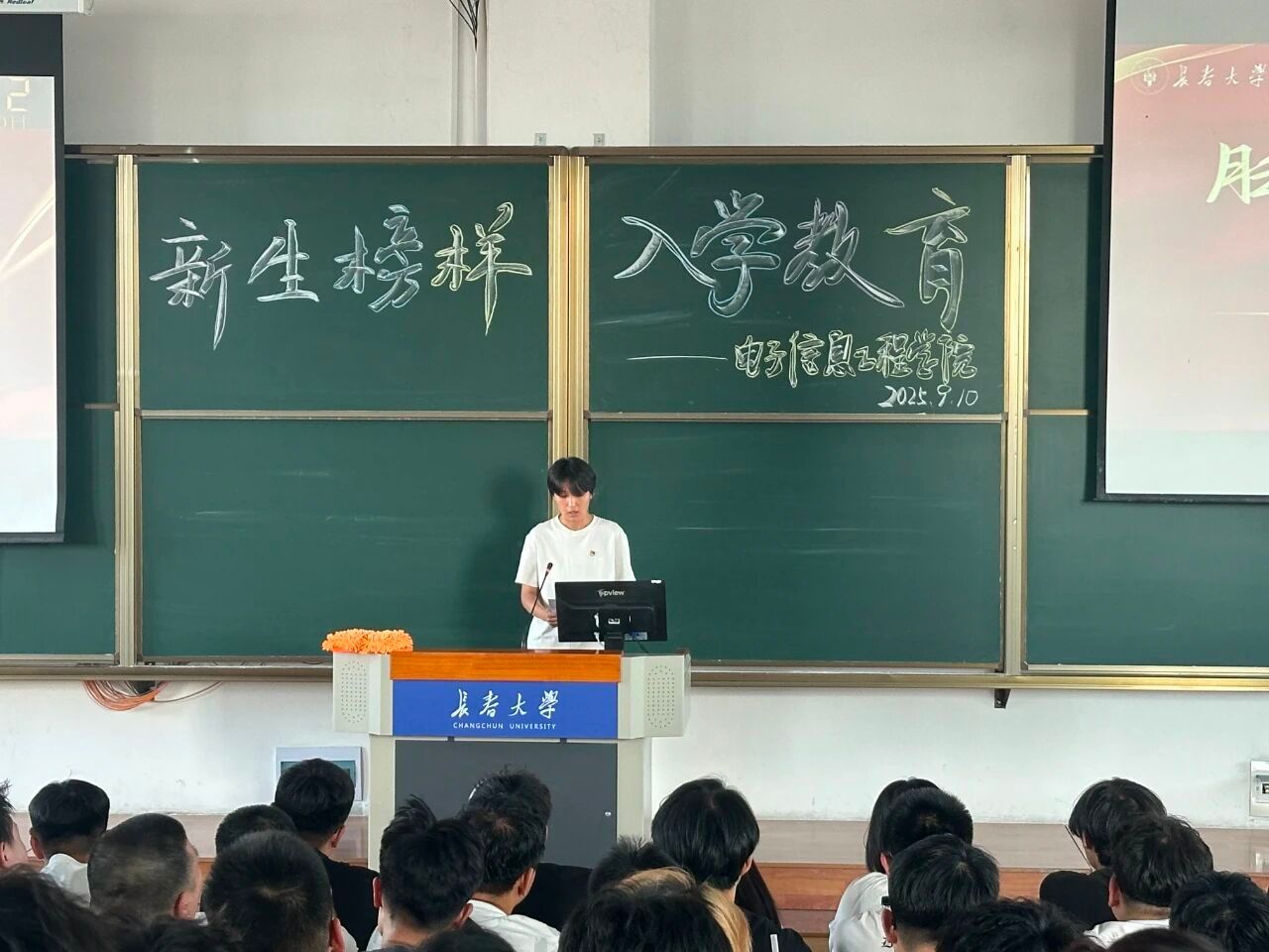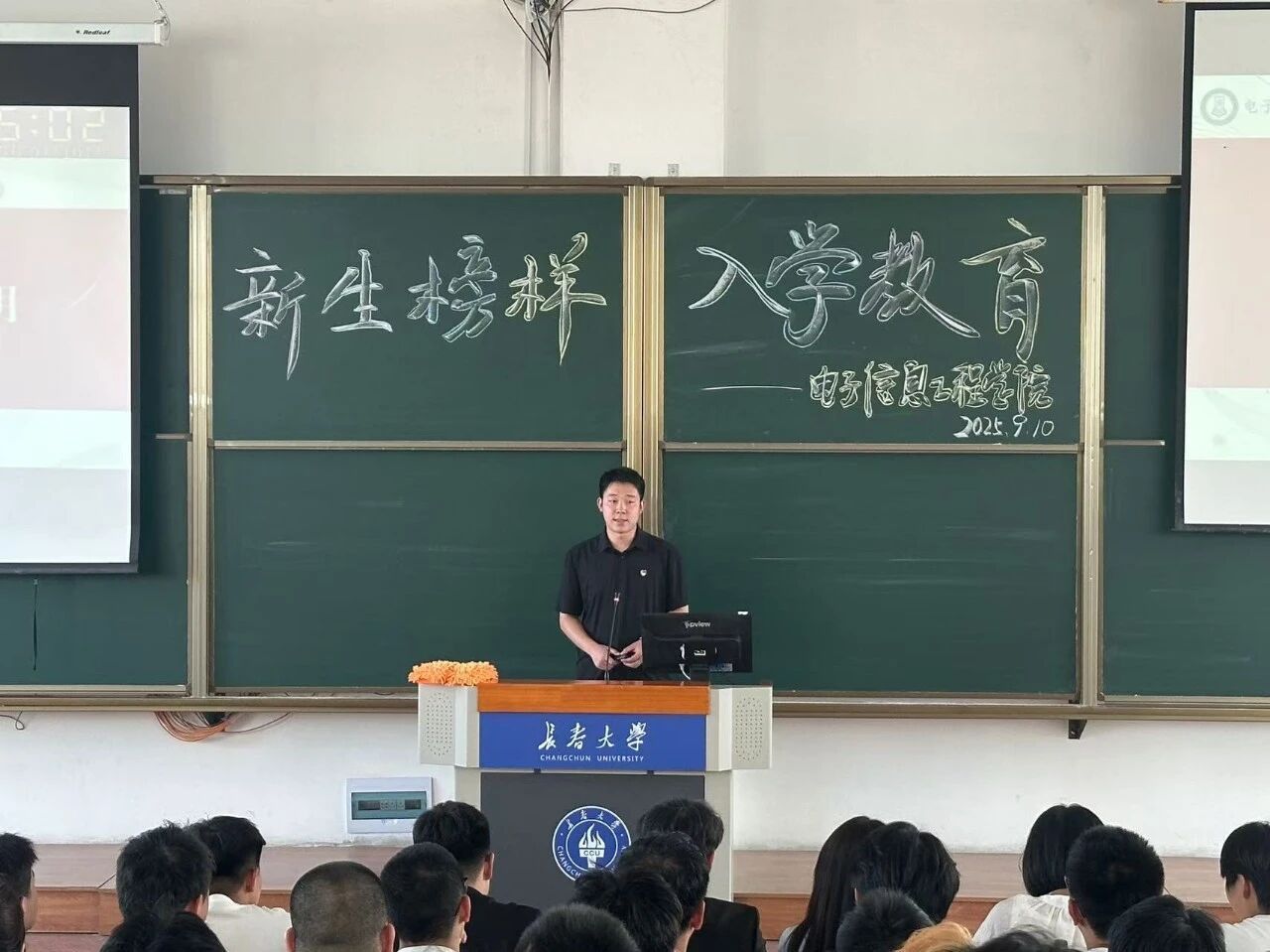 为帮助2025级新生快速适应大学生活、明确成长方向,长春大学电子信息工程学院于9月10日下午,在第六教学楼7楼东阶梯组织了一场学长学姐经验分享讲座,助力新生们科学规划大学生涯、顺利开启人生新征程,注入“强心剂”。本次讲座邀请了2025届两位优秀研究生代表:李梓畅学长和韩雨晴学姐。两位结合自身经历,从快速适应大学节奏、平衡学业与课余生活、规划专业学习方向、三个核心方面展开。